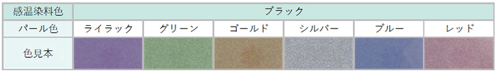 感温染料のBlackとパール顔料の組み合わせによりカラーバリエーションが増やせます。